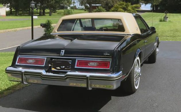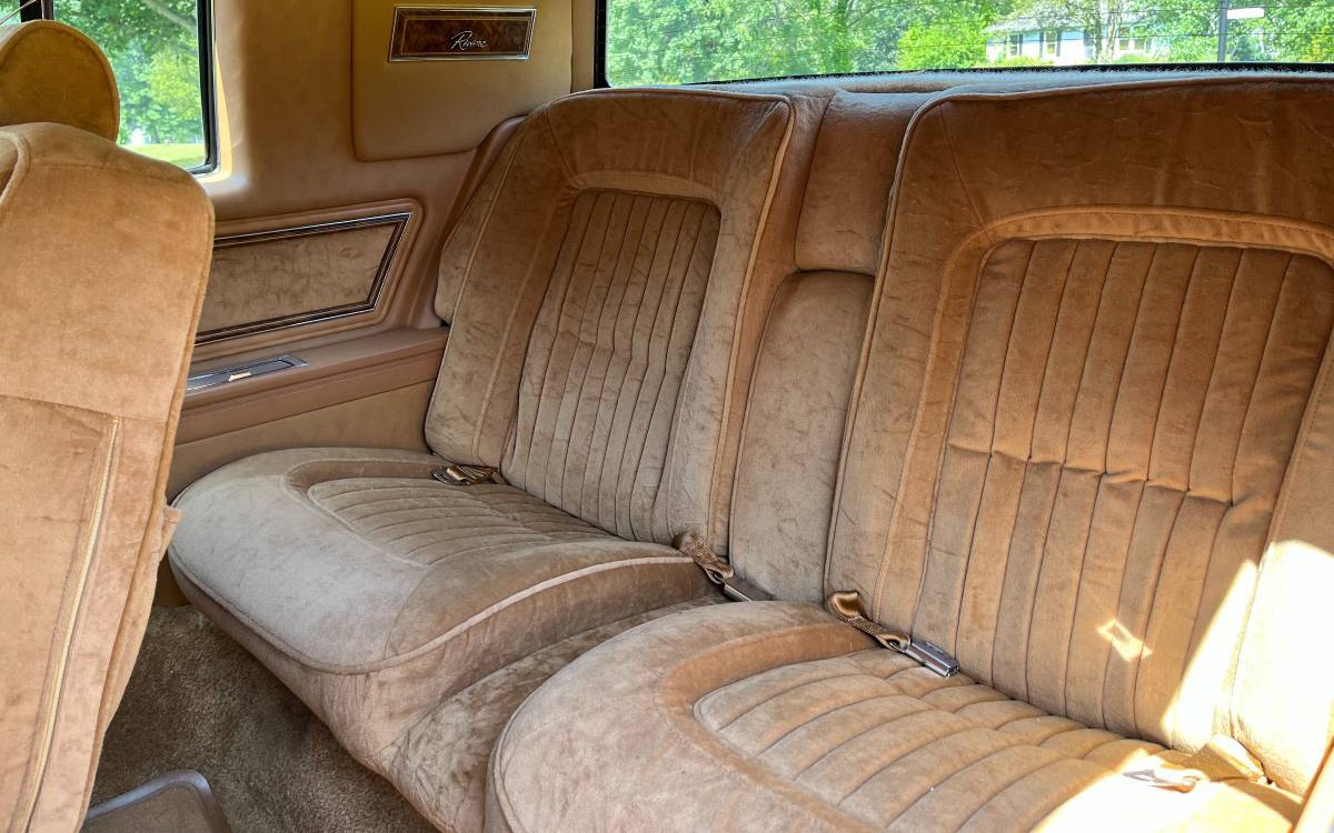 This exotic color is known as “Black” (no fancy Anthrocite, Midnight Black, etc.?), and are you sitting down? The vinyl top color is known as “Tan.” Apparently, the designers got all of the budget, and the team that chose the color names had to make do with the extra $12.50 that was left over. 1979 was the first front-drive car for the Riviera series, and how about a four-door sedan body style?