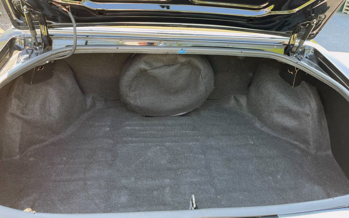 Leather seating surfaces were optional, and buyers could choose between vinyl and “tufted velour”, as seen here. They look like new, even the padding and contours are crisp with no sagging or wear. The seller lists the mileage as being 49,950, so this is one ultra-low-mile car for being 46 years old. The back seat looks perfect, as does the trunk compartment. We don’t get to see underneath, but I can’t imagine this car was driven in the winter. They say the power antenna doesn’t work; otherwise, everything is working, down to the air-conditioning.