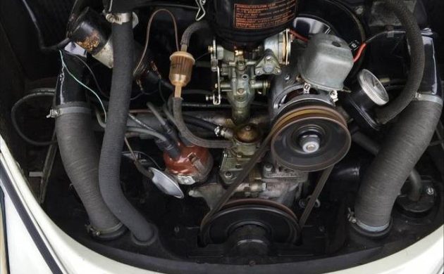 The Beetle’s rear engine compartment is clean and tidy and houses the VW’s original air-cooled, 4-cylinder 1192cc engine which the seller says “runs and drives great.” Horsepower was rated at 40 and gas mileage was estimated at 32 mpg. With its 12.5 gallon gas tank, you could drive about 400 miles between fill ups. The current seller has had this nice survivor for about 15 years, only drives it a few times a year, and is looking for the next caretaker to give it a good home and continue the pampering and preserving. How would this look in your garage?