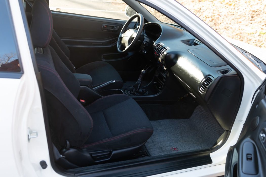 Lifting the hood reveals what makes the Integra Type-R something out of the ordinary. This is a 1,797cc DOHC 4-cylinder engine. Each Type-R engine was handbuilt by factory technicians and is full of high-performance components and clever technology. Ports on the cylinder heads are hand polished, high compression pistons are slotted into the cylinders, and when combined with the high-tech VTEC valve timing system, this little dynamo pumps out an incredible 197hp. These horses find their way to the front wheels via a 5-speed close-ratio manual transmission and a limited-slip differential. The result of all of this creative thinking is enough to set you back on your heels. Point this little beast down the ΒΌ mile, and the journey will occupy a mind-blowing 14.7 seconds. That is a figure that would scare a lot of classic muscle cars. Making this number all the more impressive is the fact that the Type-R isn’t just good for a short squirt down a drag strip. Wind it out on the open road, and it will find its way to 149mph. What isn’t to like about that? The engine bay’s presentation is immaculate, with no evidence of fluid leaks or long-term problems. The vehicle is only used for weekend drives, and the owner claims that it has a genuine 49,700 miles showing on its odometer. He doesn’t indicate whether he holds evidence to verify this claim, but the Integra’s overall condition makes the claim seem entirely plausible.