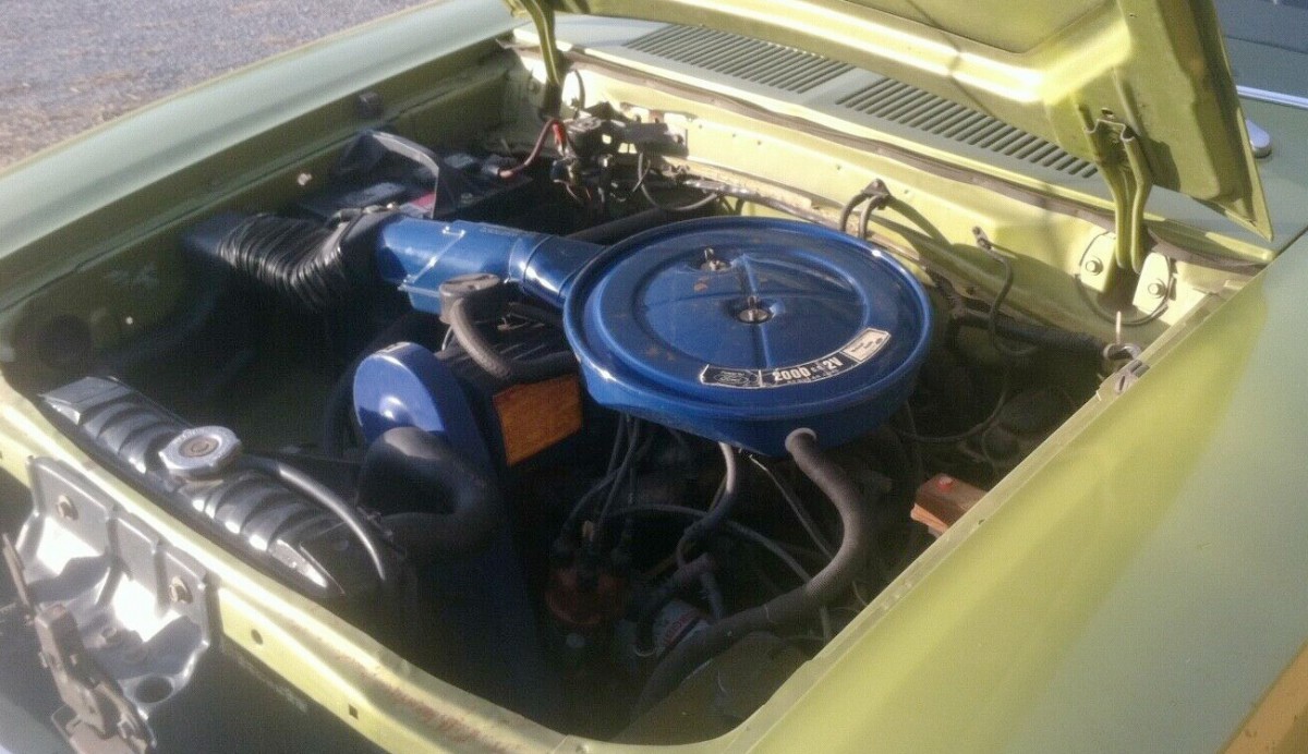The interior is truly where the time capsule name fits and if there’s a better color for a Pinto other than lime green or orange, I don’t know what that would be. This one has Ford’s Cruise-o-Matic three-speed automatic and it’s a sedan with a trunk so, of course, the trunk looks perfect, too. They mention that this car lived through a horrendous Oklahoma tornado and received exterior damage but they also say that it’s original so I’m not quite sure if that means that it was never painted? There is a spot visible that appears to have some runs in the paint. Thoughts?