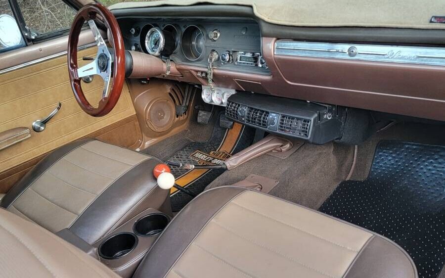 The interior maintains the same sense of originality as the exterior. Many years ago, I owned a ’65 Malibu SS hardtop and it had the same two-tone combination vinyl upholstery. The console and steering wheel aren’t original but they still tastefully fit the interior’s overall vibe. A nice addition is the aftermarket A/C which the seller states as being “ice cold”.