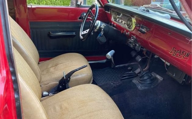The body has been transplanted on top of a Ford Bronco chassis, with some of the driveline from the donor 4×4 still in place. Back in ’65, the Falcon’s entry-level engine was an inline-6, with the 289 being the biggest V8 available. A 351 is now providing the power here, and it’s paired with a 4-speed manual transmission. There’s not a lot of specific information, such as a date hint or the exact mileage, but the seller does say that the vehicle runs and drives well.
