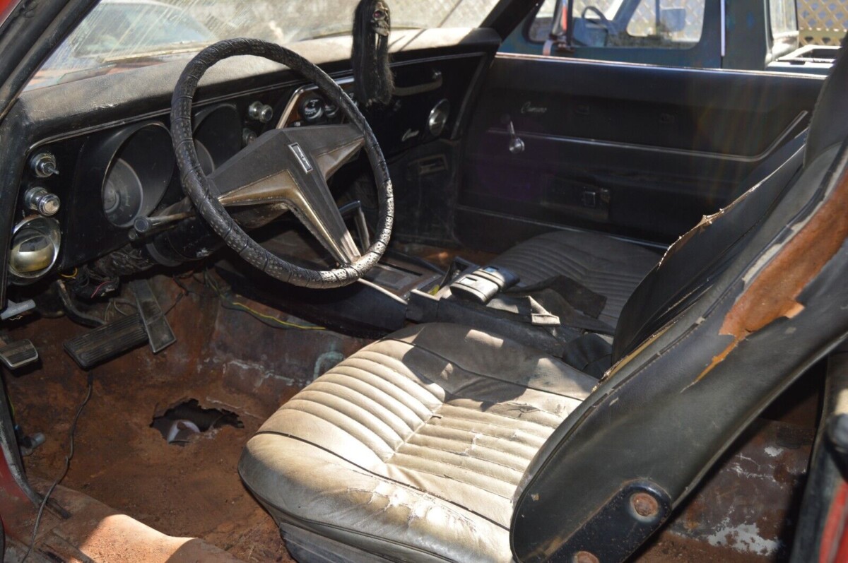 The Chevy Camaro was in its second year in 1968 and firmly in second place behind the Ford Mustang in the “pony car” wars. This car had the desirable Rally Sport option (we think) when it was built, but its distinctive hideaway headlights and grille are now gone. Also gone is the original 327 cubic inch V8, replaced by a Buick 350 and later a Pontiac 350, which is the engine in the car today. An automatic transmission is in place, a TH-400 automatic.