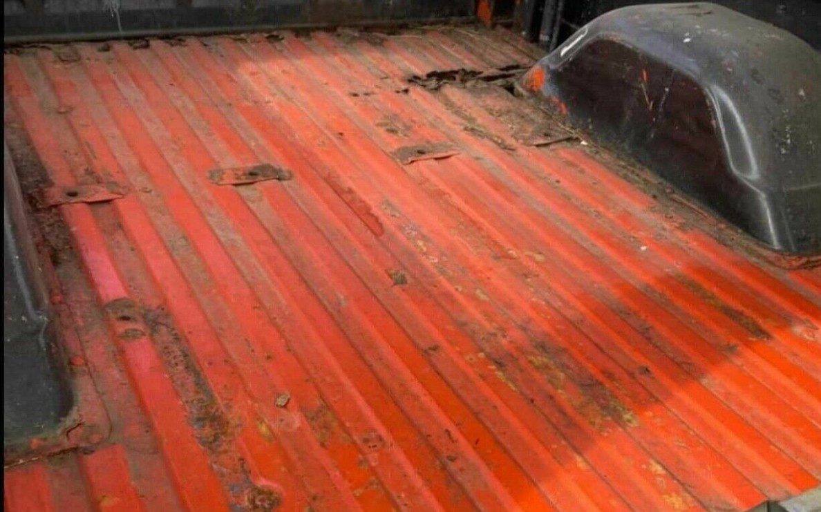 Claimed to be a top drawer CST (chrome bumpers, bucket seats, center console, carpeting,) equipped Blazer, this one looks like it has had a date with a sander. The finish is pretty worn through and is showing signs of rust in places, particularly in the bottom edges of the doors and the rocker panels. Considering the orange finished cargo bed, which isn’t in the soundest of condition, it’s not hard to imagine that this Blazer has worn more than one color. Another area of concern may be that windshield header beneath the roof attaching point – it looks like something is bubbling up there. The grille reminds me of one of those tubular pieces you could get from JC Whitney so many years ago.