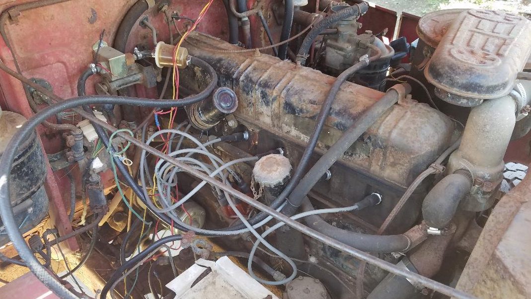 According to the seller: “There is rust through passenger side gas tank area and rocker panel, the rest of the body is perfect to be stripped and repainted.” The inline-six is the original mill but not running; however, it does turn freely. A new Texas title is included with the sale, which may also point to why it appears to have years of sunburnt paint coated with surface rust (but isn’t porous.)