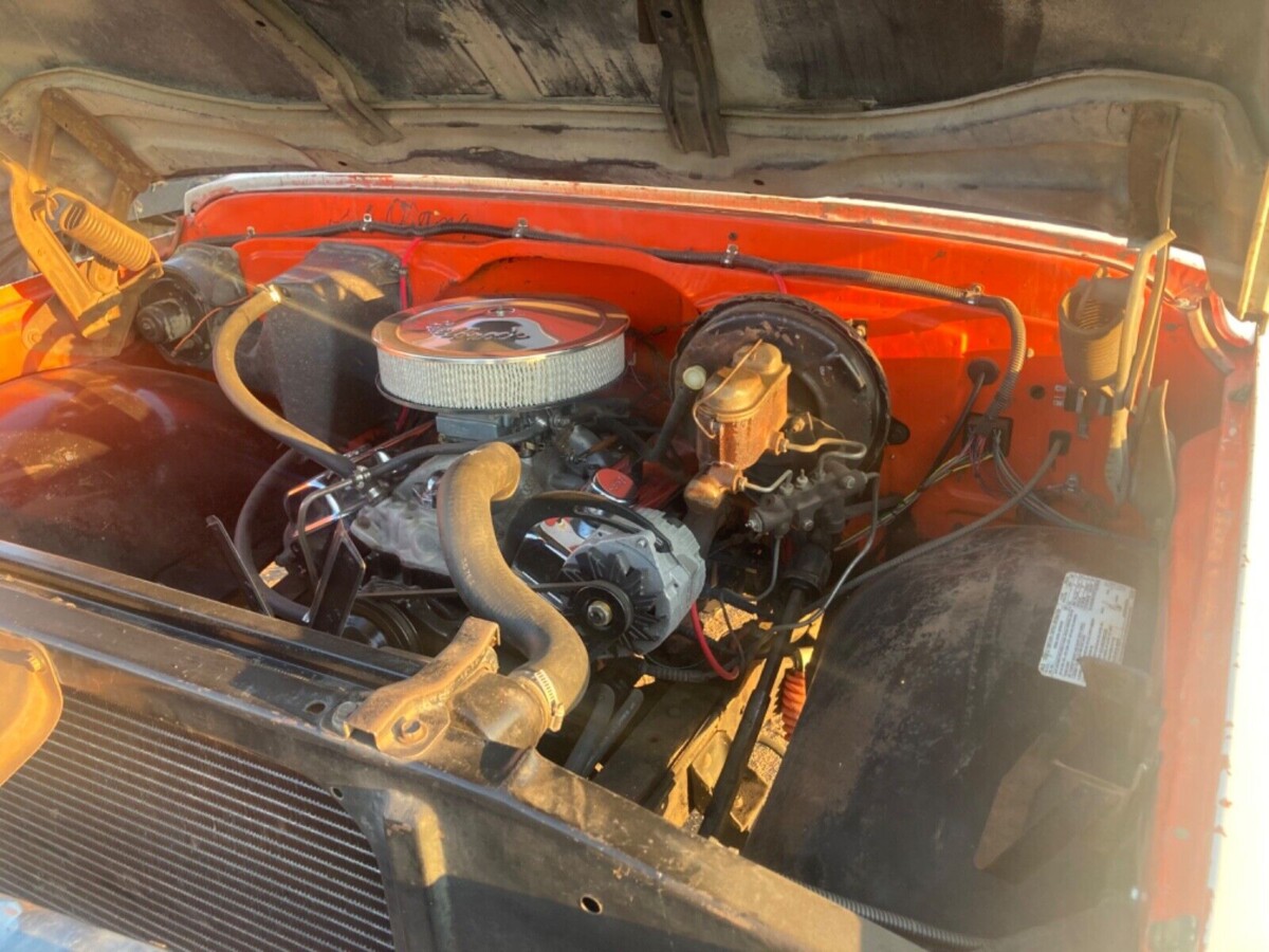 The engine bay reveals its original Hugger Orange color scheme – bummer about the repaint. It’s a lot easier to find Hugger Orange than white in a field or a parking lot, but more on that later. The engine is Chevy’s venerable 350 cu. in. V8 with a rebuilt Holley 1850 carburetor, an upgraded alternator, new fuel lines, a new HEI distributor, and a brand new electrical system front to back including the harness, fuse box, bulbs, connections – everything. All the heater hoses and the core itself are new; the brakes have new front pads and a complete rebuild on the rear drums. The battery is new, and every type of fluid in the truck has been changed. This truck is an automatic; Chevy offered the three-speed Turbo-Hydramatic TH350 in these first-gen Blazers. The NP205 transfer case was standard with an automatic.