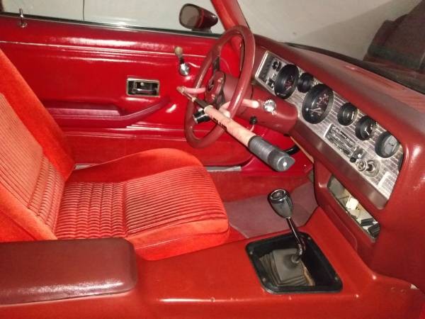The Formula has been repainted once in its original maroon paint. The interior is dark red and includes the optional deluxe interior which came with the one year only Pimlico seats when opting for cloth fabric. These seats look to be in excellent condition. This car’s odometer shows 91,625 miles. The seller states that the car was part of his father’s collection for the past 20 years. The dash is not cracked but someone has cut the dash for an aftermarket radio and no radio is currently installed. The car features air conditioning and is said to need a new rear package tray.