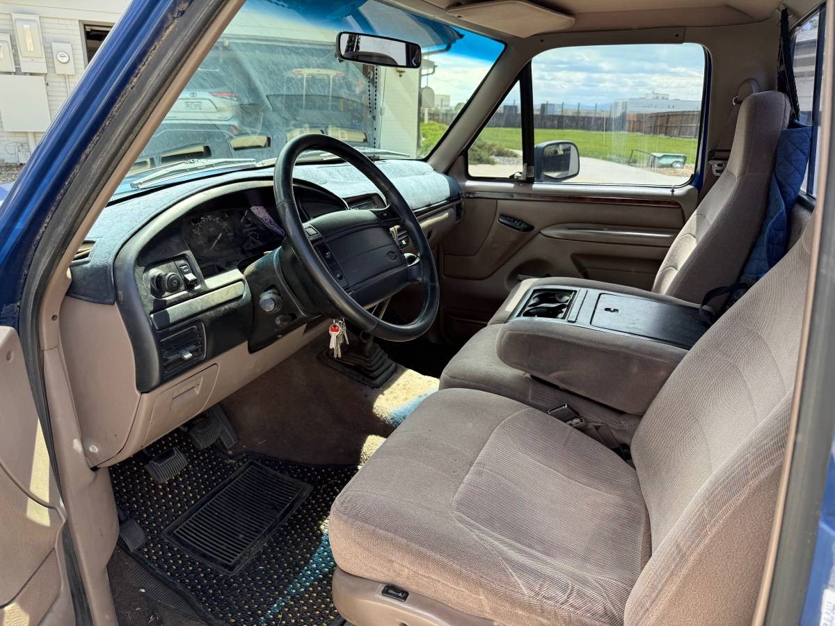 F-150 in this era had big incentives for ordering the six and 5 speed, the standard running gear for the 150. These trucks were ordered this way because the incentives made them a bargain for leasing. 95 and 96 Eddie Bauer option gave you the 40/20/40 seat, two tone paint, turbo front bumper, and tie down anchors that went into the bed stake pockets. The dealership where I worked deleted the 40/20/40 seat option for an additional credit. Standard xlt bench was substituted. Leather seats were NOT available in this era of F series. Any leather seats were installed at an outside conversion facility.