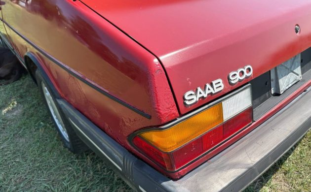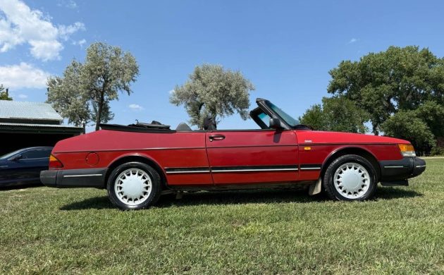 The owner of this 1989 Saab 900 Turbo convertible admits it’s “not perfect,” and that’s something of an understatement. But the car is said to drive well, and the asking price on Craigslist in Boulder, Colorado is only $3,300—cheap for a manual turbo “vert.” Thanks Jack M. for the tip. The owner is honest about the car. “If you are looking for a fun classic Saab 900 Turbo convertible, welcome to the party! She’s a zippy, unique, open-top experience mixed with Swedish-funk and safety. If you need something perfect —100 percent reliable, rust-free, ready for a Pebble Beach Concours… well… you may wanna pony up the extra $$ and find a nicer example. This redhead is a solid and fab runner, but not perfect.”