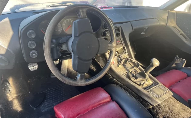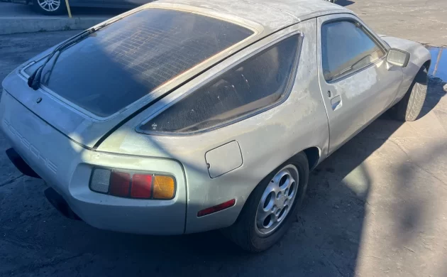 Let’s talk about some good points, however: the cosmetics are more or less decent, with no obvious evidence of prior respray. I can still see the original paint code sticker in the door jam and it corresponds to what we see on the outside. The phone dial alloy wheels are in good condition, and the lenses and glass are intact as well. The engine produces 230 horsepower and 253 lb.-ft. of torque, and it was a strong performer in its day. Although I see some damage underneath from improper jacking, I also see no rust. The 928 is always a risky decision, but with the 5-speed manual, it could be worth a roll of the dice if the price stays low enough.
