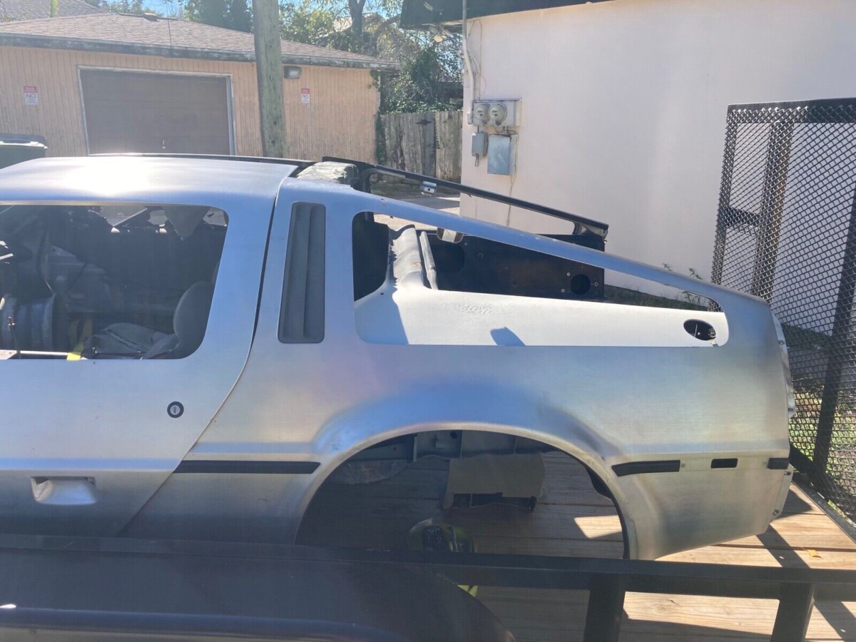 The seller is very open about the fact that this DeLorean will require a committed caretaker to bring it all the way back. The body has been separated from the chassis, and in that time, the frame has been scraped of presumably any surface rust and coated with POR-15 followed by a coating of Eastwood internal frame material. The DeLorean’s body remains on a trailer while the frame is separate; obviously, this makes shipping more of a chore, but to the seller’s point, it also makes it easy to view how clean the chassis now is in broad daylight. The seller notes that some of the body panels will require additional work.