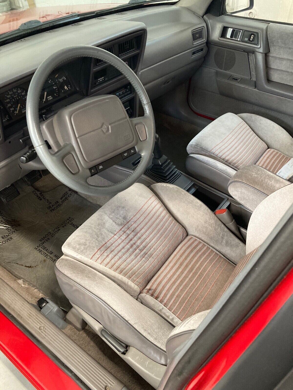 Alright, let’s address this interior color. The seats were shared with the R/T. These are various shades of 1990s gray with accents of red to spice up the pattern. The driver sent may well benefit from a shampoo but there is no brown in the interior.