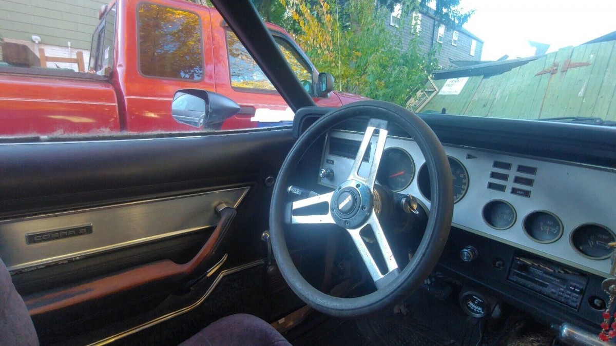 The Cobra of the Mustang II generation was probably one of the bigger insults to Mustang enthusiasts ever conceived. The previous years’ Cobras were true fire-breathers that combined rarity and pedigree like few muscle cars ever have. The Mustang II was already a disappointment to many Ford fans, but the Cobra was particularly offensive, which is why it’s never been much of a collector’s item. But when equipped with a V8, it was at least a respectable performer, and they certainly looked pretty cool with the proper Cobra decal kit adhered to the body -which this car is missing. It may be due to a respray, as the paint looks quite shiny in photos.