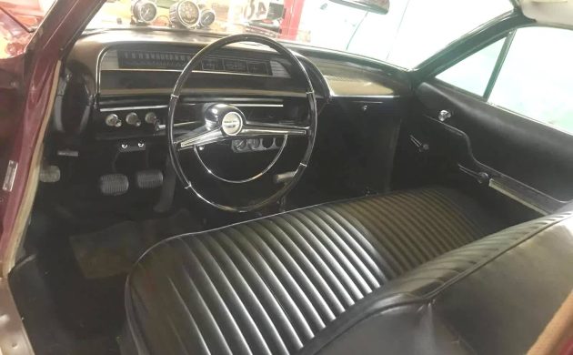 Stock steel wheels on what looks like a narrowed rear axle and hood gauges suggest this 1963 Chevrolet Bel Air might be more than a former school teacher’s ride. The Torrington, Connecticut classic accumulated fewer than 20,000 miles in its 62 years, according to the listing here on eBay. Furthermore, check out that claimed original paint! Not bad. Clearly this bruiser logged its miles in one-quarter increments before 1980 when it vanished for “decades.” Now it comes to market with about 800 miles on a built original 409 making 500 HP. Thanks to Mitchell G. for spotting this highly original beast. An earlier auction ended with the seller’s Reserve not met, and this time it’s listed at $45,000 Buy It Now or best offer.