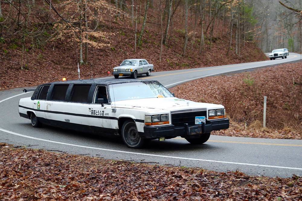 If you look closely in the pic on the road you’ll see the shortened Lincoln Town car that was featured here on barn finds and was purchased by Roadkill for the Lemons rally.