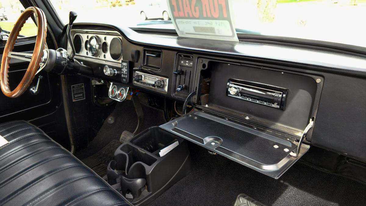The cedar-lined stepside box, or bed, is from a fourth-generation Chevy or GMC pickup – a 1989, to be exact – according to the seller. I would have very much preferred a 1964 stepside to match the cab, but for a custom build, I don’t know if it looks too bad, does it? It’s maybe a bit round and modern compared to the cool, cubist cab of the first-gen pickups. This truck is right on the money for drivability, though, with four-wheel disc brakes to stop at every other gas station with that 500 cubic-inch V8 in the back.
