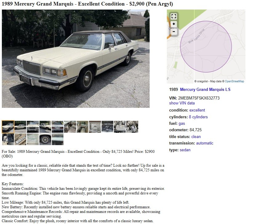 UPDATE – This 1989 Mercury Grand Marquis LS is listed for sale again after it was featured in June of 2024 here on Barn Finds. It’s posted here on craigslist and is still located in Pen Argyl, Pennsylvania. The seller has dropped the price from $4,950 down to $2,900! It’s $2,050 cheaper, will it sell this time? Here is the original listing, and thanks to Mitchell G. for the tip, again!