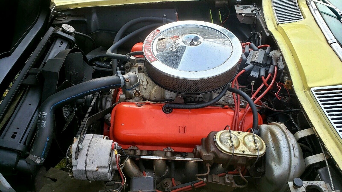 The seller describes the Sunfire Yellow paint on the Corvette as being a good 10-footer. It isn’t perfect, but it is very acceptable for a driver-quality car. The buyer might choose to treat the car to a repaint, which is one of the few things that it needs. The fiberglass looks to be in good order, with no evidence of stress cracks or other problems. The seller supplies some clear photos of the underside, and apart from the occasional light sprinkling of surface corrosion, it appears to be rust-free. He makes no mention of any rust problems, so if the birdcage is as good as the frame, the ‘Vette could be a real winner. The trim and glass are in excellent condition, while the side pipes add a sense of purpose. The Rally wheels have no visible defects, and these are wrapped in a set of redline tires.