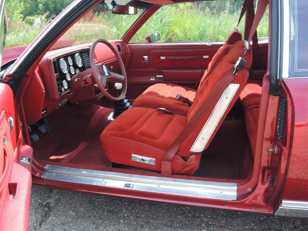 The interior is nearly all-stock but in mint condition, except for some key details that clue you in to what’s happening underneath. The Monte Carlo’s drivetrain features a Chevrolet 502 Ram Jet crate engine paired to a Tremec T56 Magnum 6-speed manual transmission, which you can see sitting perfectly in the center console. You almost have to look for it in the photo, it’s so nicely integrated to give it an OEM appearance, like it was always meant to be there. There’s also a Moser Truetrac 9-inch rear coupled with 3.73 gears, along with adjustable shocks, Hotchkis front and rear sway bars, Hotchkis upper control arms, and more. Long tube headers and a Flowmaster exhaust round out the list of improvements.