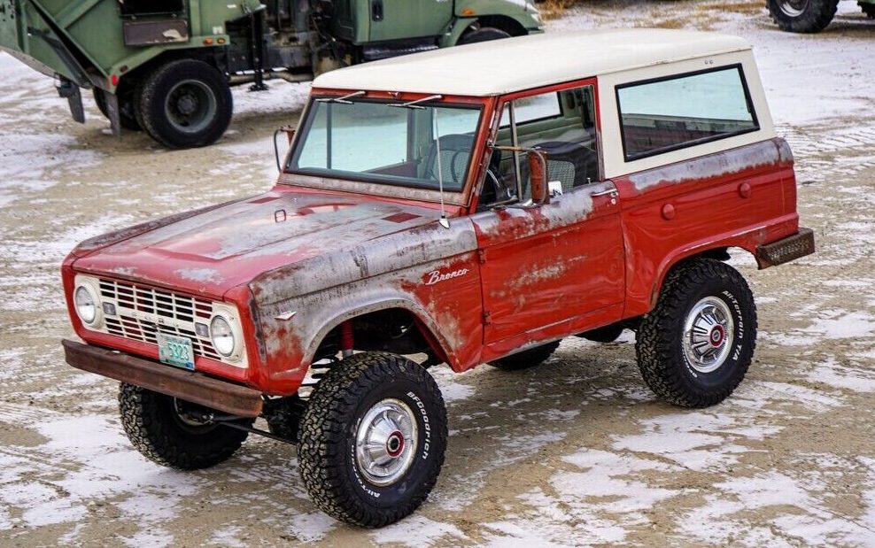 The Bronco is equipped with a numbers-matching 289 V8 engine paired with a three-on-the-tree manual gearbox. The engine has been rebuilt and bored .030 over, and with just 50,000 miles, it’s fair to call this truck a “low mileage” example. The seller notes that based on the options and the Rangoon Red and White color combo, this is one of just 430 Broncos with this exact configuration. Other features include locking front hubs, a fold-down windshield, dual fuel tanks, and upgraded front power disc brakes. I have to believe the seats have been redone at some point in time, too.