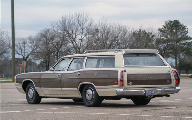 My Mom had a new ’71 that was loaded out, including the deluxe wheel covers, rim blow steering wheel and a 429 Police Interceptor engine! All wrapped in a subdued Springtime yellow paint with woodgrain. Dad said when you stepped on it, it sounded like the carb was going to suck the hood into it!
