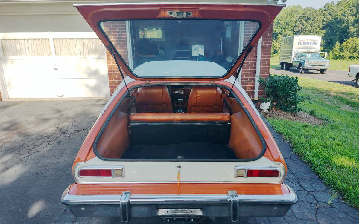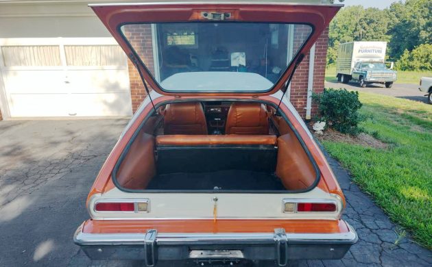 This ’74 3-Door Runabout has the Sports Accent Group package and is striking in Pearl White and Orange, with matching wheel covers. The big bumpers are unfortunate, but that’s what happened in the 1970s due to safety regulations. The photos aren’t the best, which is a little unusual for a $32,500 asking price. I would have expected some professional photos, not to mention seeing a Pinto on craigslist for $32,500 is a bit unusual, too. Yes, that’s a white vinyl top, by the way.