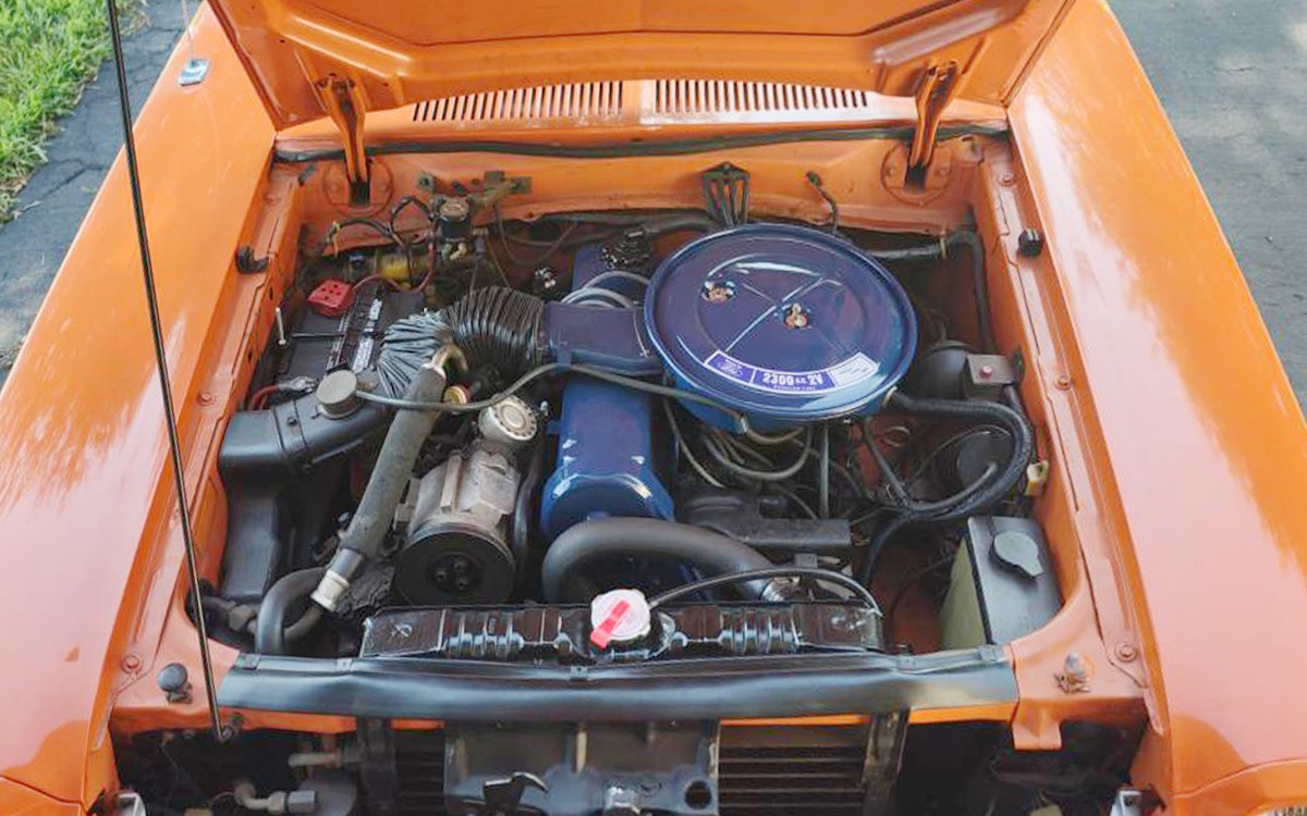 Speaking of photos, or a lack thereof, this is the only photo that gives a hint of the interior. No, really, there are no other photos, other than this one of the side. Since this car has the Sports Accent Group, the interior should be orange vinyl and cloth seats because of the orange exterior, but it would have been nice to see them. Another thing you would have seen is the Cruise-O-Matic transmission selector between the front seats. This car doesn’t have a four-speed manual, bummer.