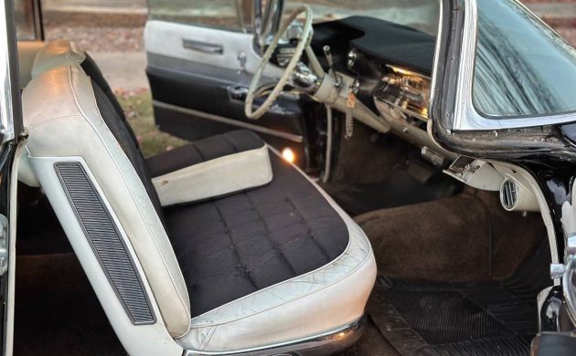 Trimmed in a combination of Black cloth and White leather, this Caddy’s interior presents acceptably for a driver-grade classic. I think that the fabric on the front seat is beginning to split, and a cover hides the cracked dashpad. Failure of both items is fairly typical, but replacement parts are available for those wishing to improve the appearance. The same is true of the carpet, which is faded, but not badly worn. The seller states that the air conditioning requires at least a recharge to blow cold, but doesn’t mention any other functional shortcomings. The Coupe isn’t lavishly equipped by modern standards, but the A/C, power windows, Autronic eye, and AM radio are far beyond what most car buyers received in 1960.
