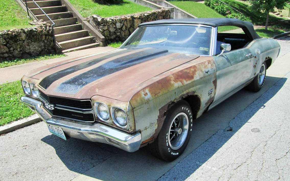 From 6/5/2018 – This is either a steal of a deal or a rusty way to spend $50k, but it probably just depends on how badly you want a convertible Chevelle SS 396 with a 4-speed! That’s right, this seller is asking $50k for a rusty barn found project. On the upside, it’s a highly optioned convertible that actually runs and drives. The seller states that it “needs sheet metal, bodywork and paint“, but those are some of the most expensive parts of any restoration. After looking at what nice ones go for though, it might actually make financial sense to restore this one over buying one that’s done. You can find this one here on craigslist in St. Louis, Missouri. Special thanks to Michael for this tip!