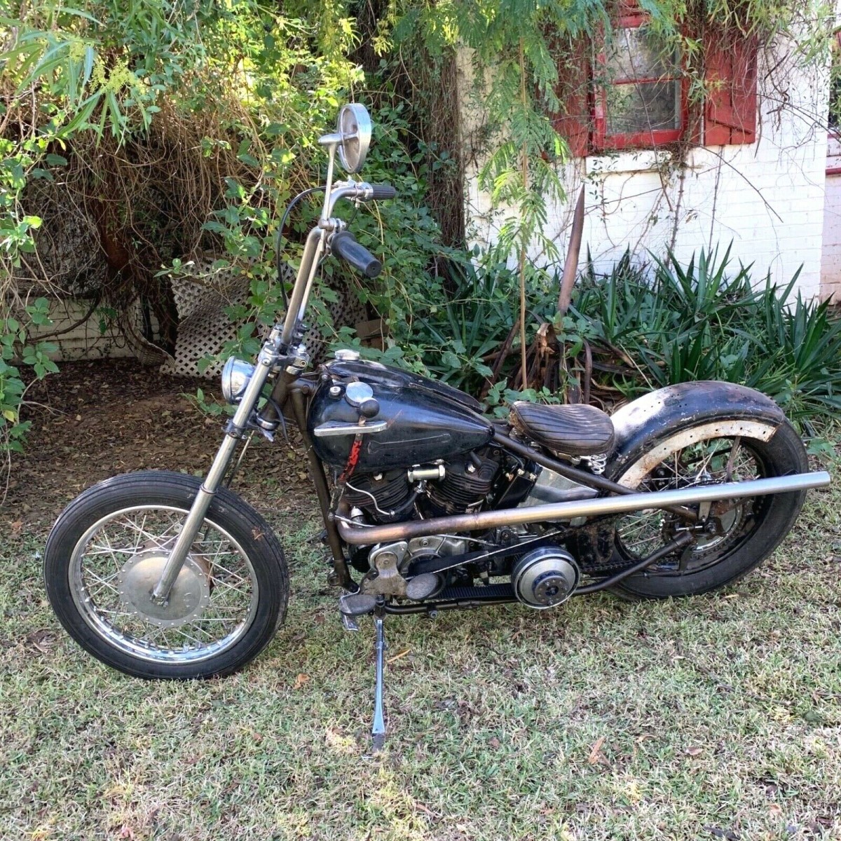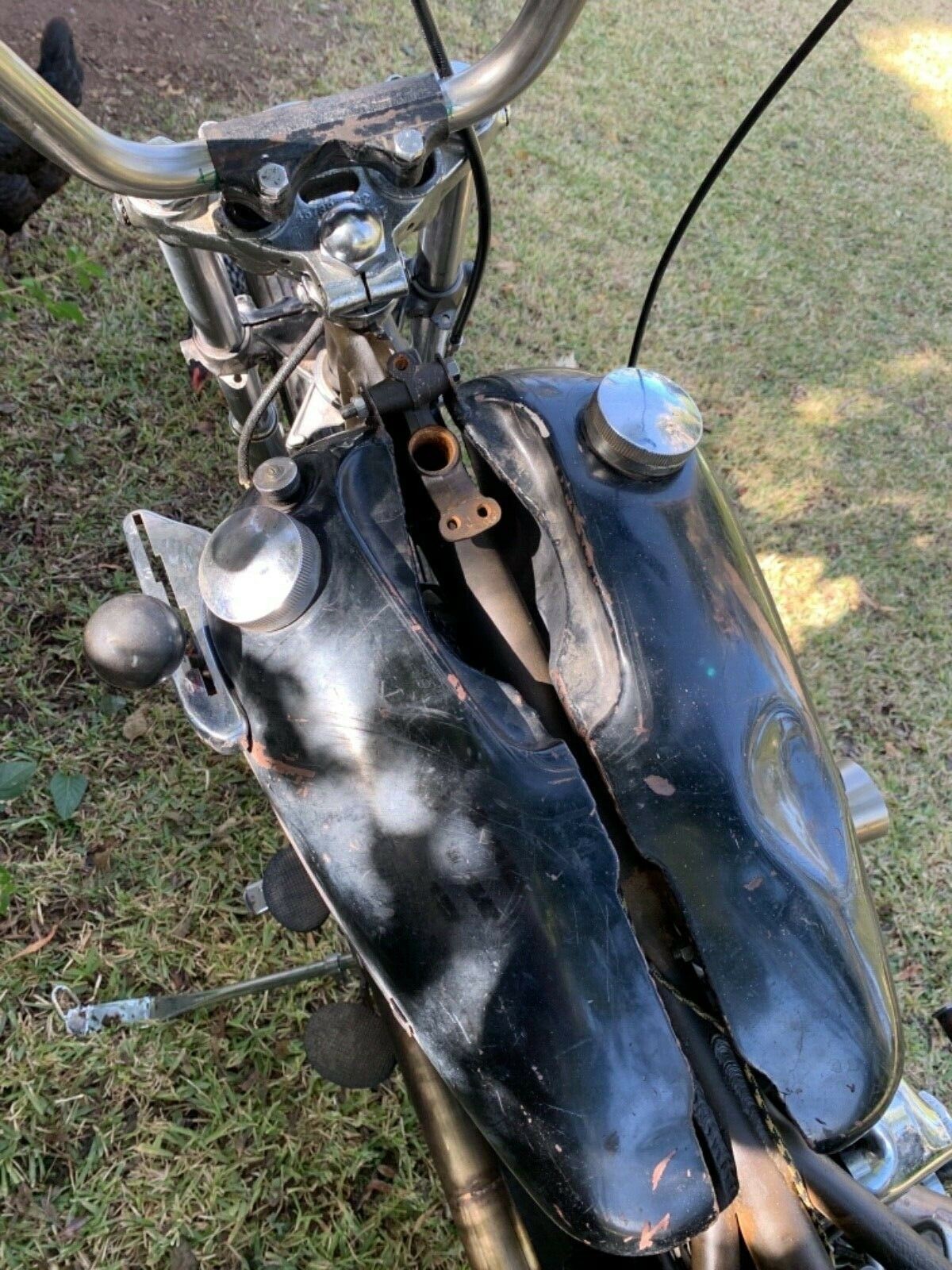 another thing, that front end is an early sportster front end with the thin tubes, mechanical brakes, kind of winky for the heavier 74 big twin.