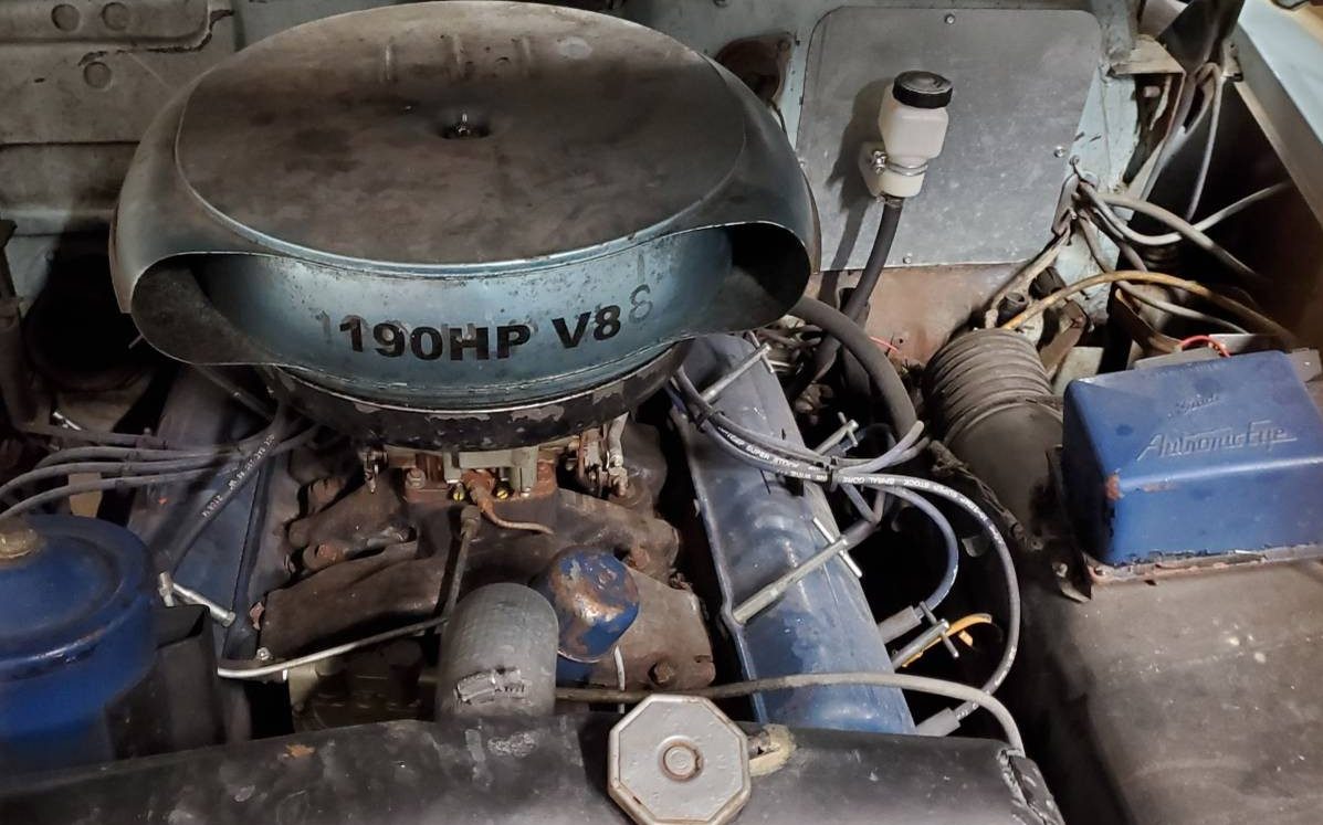 A 190 gross HP, 331 CI V8 engine married to a Hydramatic automatic transmission allows this car to, “start, stop and run reliably“, claims the seller. With the exception of a 12-volt charging system conversion, things in the engine room appear to be as originally intended.