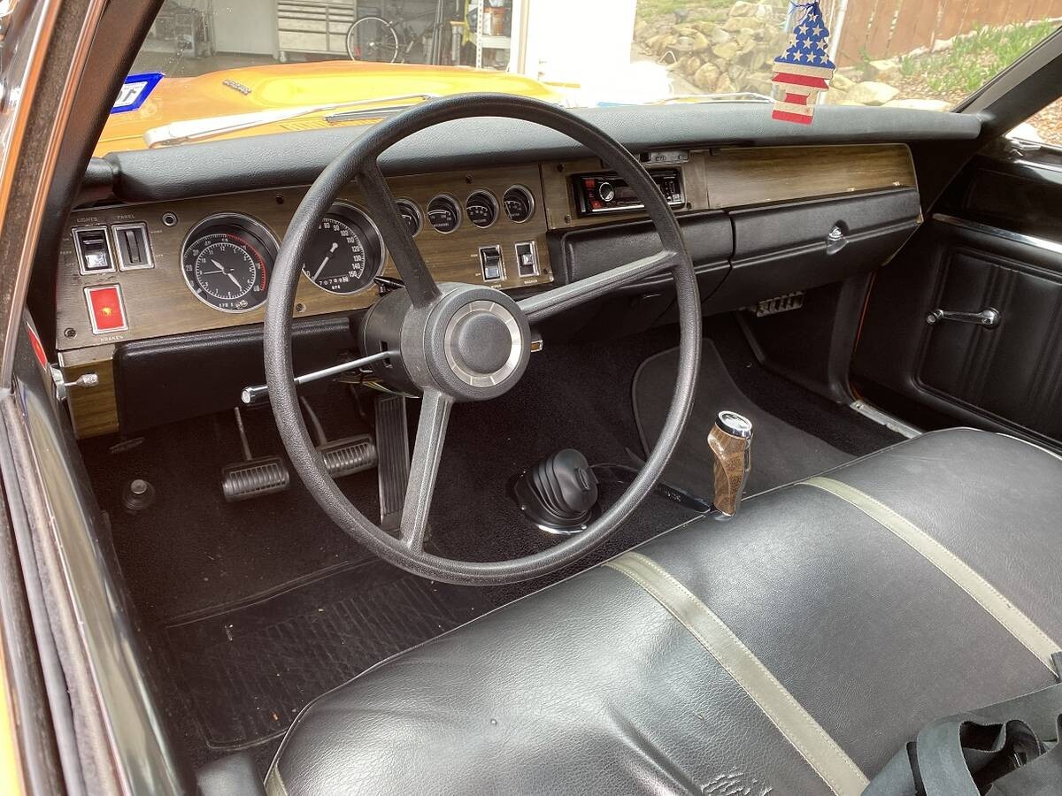 I’ve been searching for an aspect of this Dodge that causes disappointment, but I’ve come up blank. The interior presents exceptionally well, with no faults beyond slight stretching on the driver’s side of the front seat. The upholstered surfaces, carpet, dash, and pad are excellent. There are no cracks or signs of abuse, and the only visible addition is a modern CD player. It has a few desirable features, including a Rally gauge cluster with a Tick-Tock-Tach, and an ultra-cool Hurst pistol grip shifter for the four-speed. The seller states the car isn’t a show-quality example but isn’t far from the mark.