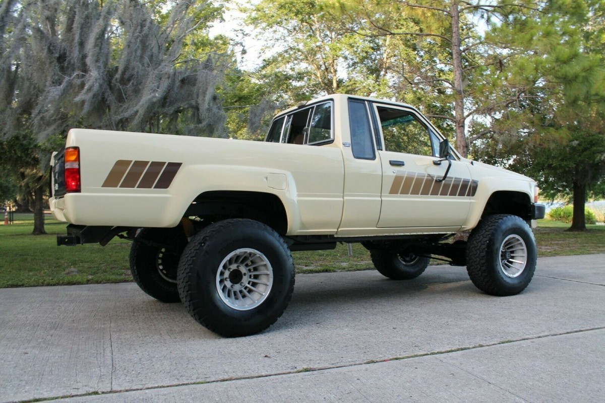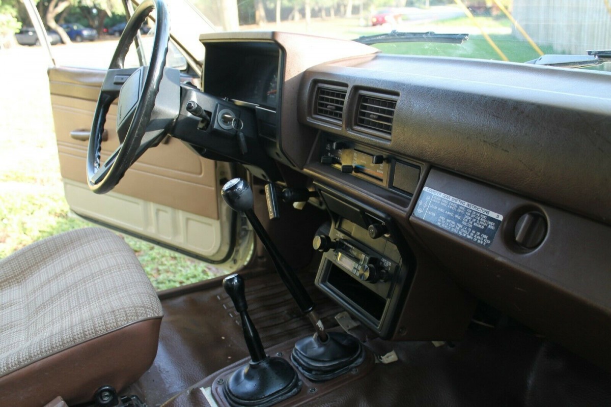 Especially when the interior looks like this. You can’t fake original cabins like this, especially with brittle Japanese plastics. The dash shows no signs of cracking, impressive considering this appears to be a Florida truck. The seats are untorn and the rubber floor mat looks minty. Thankfully, this pickup has the preferred manual gearbox to get the most out of the dependable-but-ponderous 22RE engine.