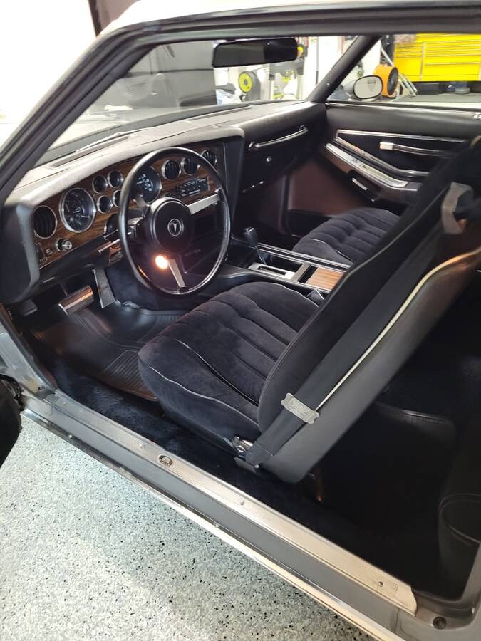 The Grand Prix is riding on 15×7 Pontiac Rally II wheels. The seller states that the car is rust free. The side windows appear to be tinted in this picture but I think that is just the sun. The other pictures show the car to look relatively stock. The seller says that the paint is driver quality and looks good. I personally own a 1977 Grand Prix and it is one of my favorite cars to drive.