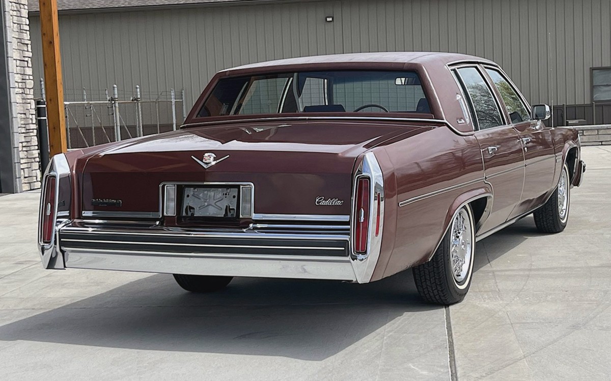 The fifth-generation DeVille series was offered from 1977 through 1982 in both two-door Coupe DeVille (sometimes seen as De Ville or deVille) bodystyle, and the four-door Sedan DeVille, as seen here. This one is shown in beautiful, rich Redwood, one of 17 colors offered by Cadillac in 1982, although not all of them were available on the DeVille series.