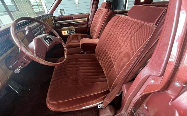 It isn’t surprising to see the interior appearing as if it’s right out of a brochure, and it’s covered in a matching color in a horizontal corduroy-like fabric. The Sedan DeVille isn’t made for winding its way through the chicanes. As you can see, the front seats don’t offer much in the way of bolstering, and that’s ok. This is a car that you slide into, silently glide your way to your destination, and slide back out again. The back seat looks like new, but oddly, even with 106 photos, there isn’t a single photo showing the trunk compartment or the underside.