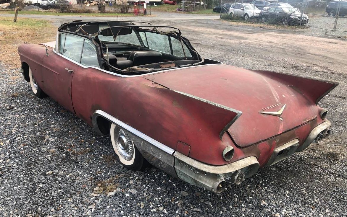About fifty years ago I recall one exactly like this in the same shape In Portland Or. We had a customer who was a drunk and bum who used to always have old beat up Cadillacs. I got no clue where he dug them up literally or what happed to them. I recall the Eldo sitting in remants of a garge for a few years then disappearing. This would have been the mid to late sixies. Mostly mid 50’s vintage. He is long gone and the house been yuppified so all traces long gone.