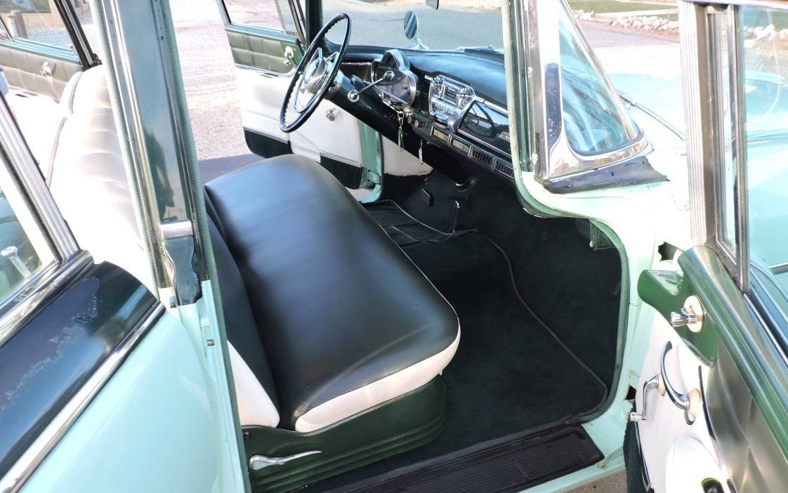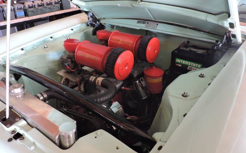 So what about that Hudson DNA? In a strange turn, you couldn’t get a Nash engine in your Nash-bodied Hornet. Standard equipment on the Hornet Custom was the famous 308-cubic-inch “Twin H-Power” six that powered Hornets to so many NASCAR race wins (80 of them). With those twin carburetors, the 308 produced 170 horsepower, which was cooking for a flathead six-cylinder, no matter how big it was. With the Hornet six, the available automatic transmission was GM’s Hydra-Matic Drive, finished up with a tallish 3.15:1 rear axle ratio. This particular Hornet is well-detailed under the hood and is ready to drive with fresh fluid changes, an aluminum radiator with electric fan, an alternator conversion, and working air conditioning (an aftermarket unit, although this is a true factory-air-equipped car). The seller says that it “runs and drives great!”