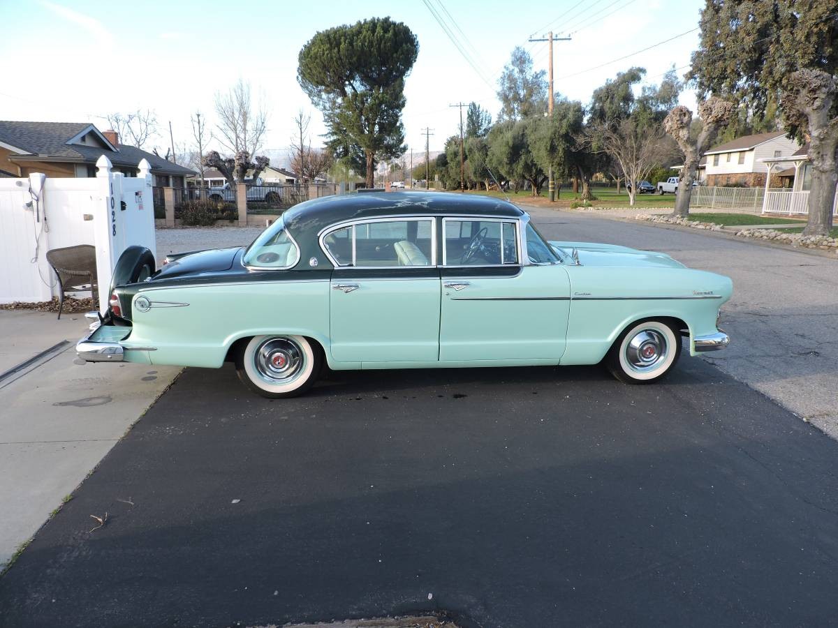 Imagine a 10 or 11 yr old boy waking up sat. morn excited cause a new (used) car that was delivered Friday nite when I was sleeping,,going out to the garage and seeing a 55, maybe 56 Hudson same color as this one,,what a let down, but it did run good,and guess it got good mileage and was comfortable,,had the V8 and auto,,,But it did rust pretty good. and was replaced a few yrs later with a 59 Olds 4 dr ht