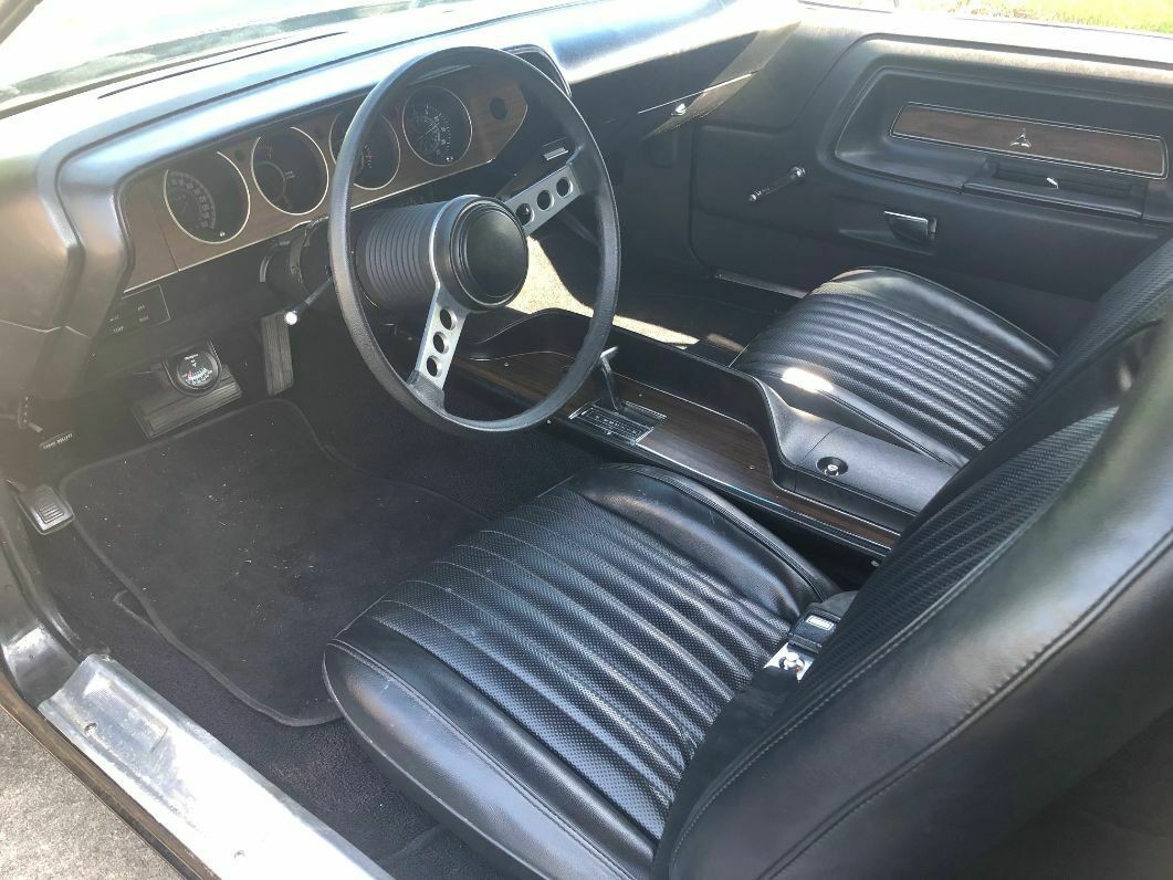 This Challenger comes with the Rallye package, which provided for a higher level of trim and comfort than a standard Challenger. The seats, door panels, dashboard, console, woodgrain and carpeting all look to be in good condition. The doors open and close as they should. We assume the car has factory air conditioning, but that is not mentioned.