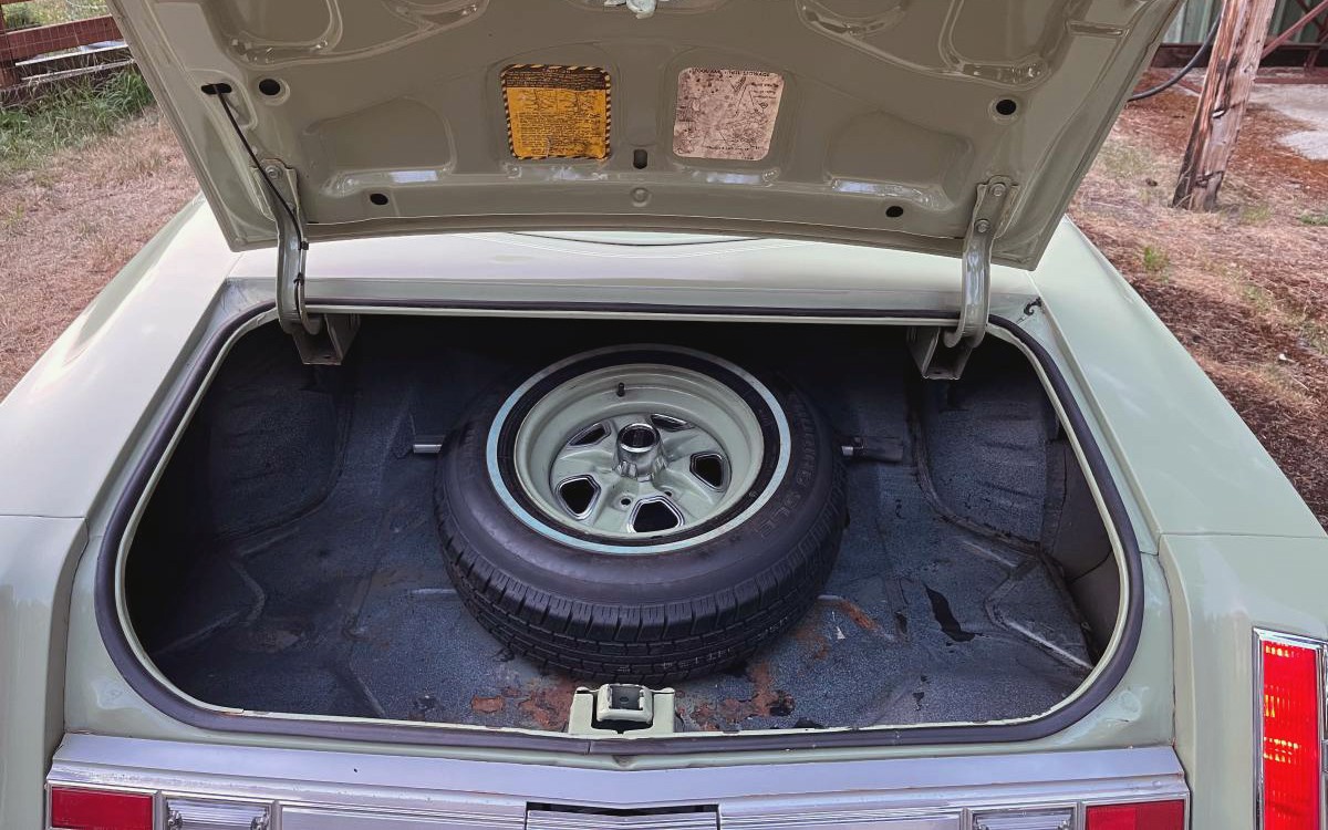 Other than what looks like maybe some fading on the carpet and wrinkling on the side of the front seats, the interior looks outstanding. I’d always prefer fabric over vinyl for year-round comfort, but the seats look great, both front and rear. The trunk looks nice, but is that surface rust on the trunk floor? I’d want to see some underside photos of this car with that asking price. They also say that the radio, clock, and AC aren’t currently working as they should, so there’s work to do here.