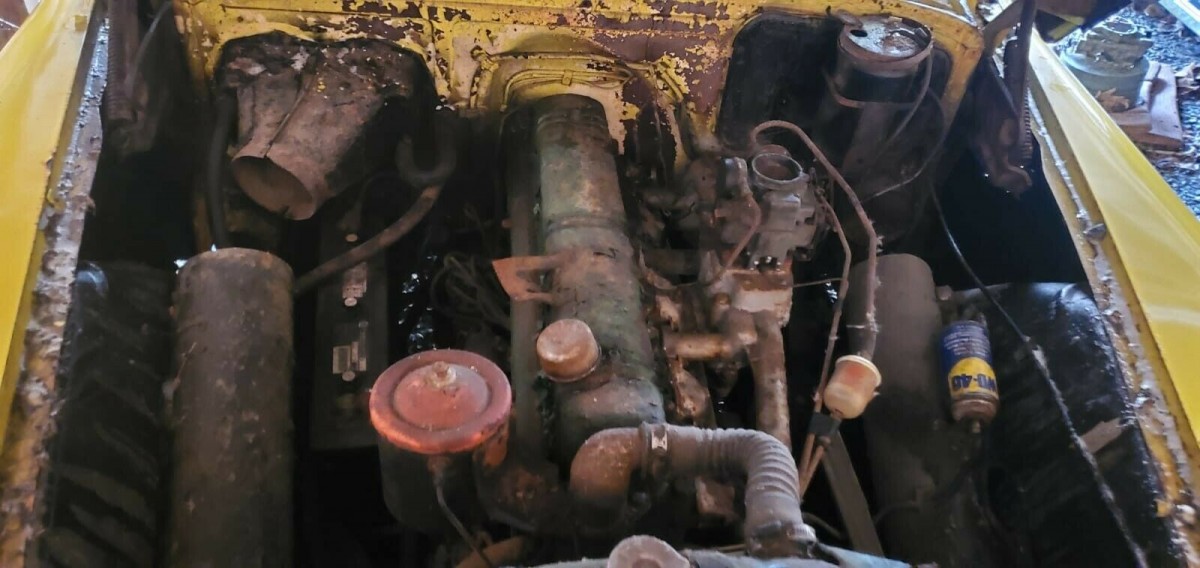Here is that straight-eight. Sure, it looks dingy at the moment, but it also looks pretty original. I’m wondering if someone tried to use WD-40 as starting fluid? The seller does tell us that the engine is free and that the gear selector does work but that they are not sure if it runs or not. Do you think it really could have less than 1,000 miles per year of use?