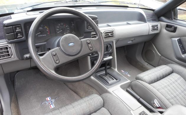 I typically treat claims of low mileage cautiously unless the seller can produce compelling evidence. However, some cars carry enough positive character traits to make the concept plausible. That is undoubtedly the case with this Mustang. The first owner trimmed the interior in Gray cloth and vinyl, a shade that is prone to stains and marks. This car has avoided those issues, and there is no appreciable wear on the prone outer seat edges. The carpet is slightly marked, but that is as close as we can come to criticizing the overall condition. The factory stereo has made way for a modern CD player as the only visible aftermarket addition. The seller admits that the air conditioning may need a recharge since it only blows cool. They don’t mention any other functional shortcoming with an interior that features power windows, power locks, power mirrors, power front seat lumbar adjustment, cruise control, and a tilt wheel.