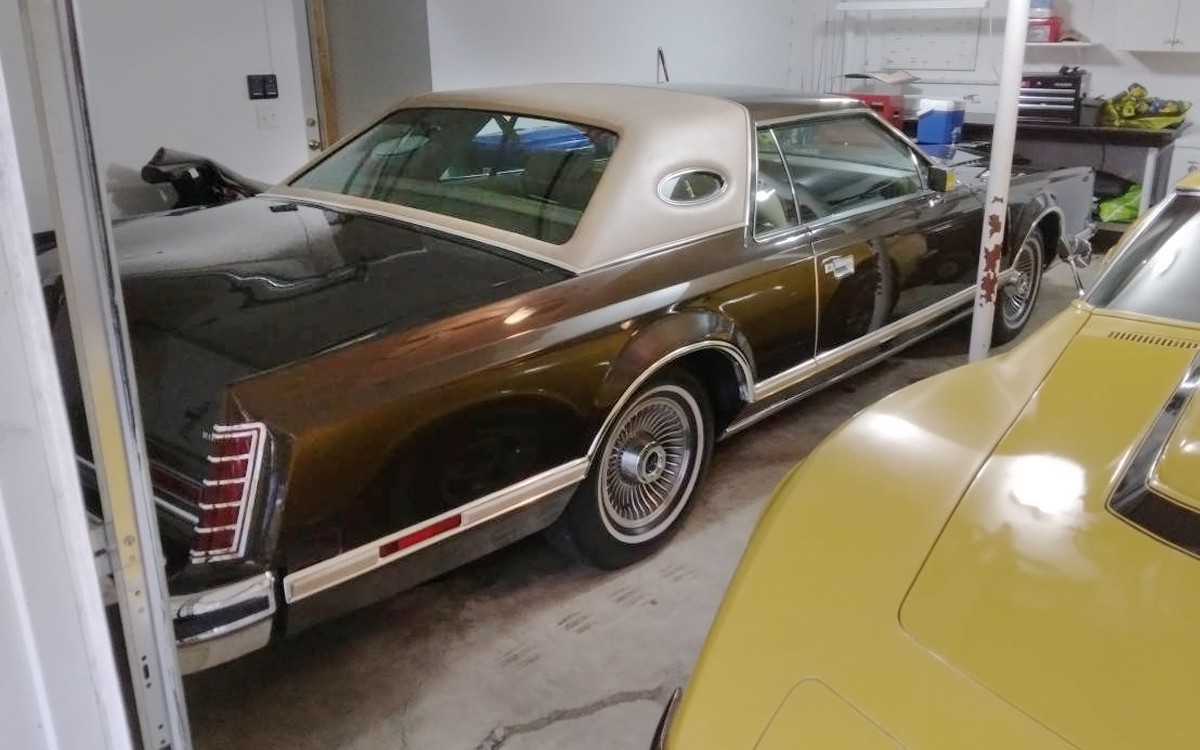 What a beautiful, long, lean, luxurious car. I’m not talking about the yellow Corvette, I’m referring to this beautiful brown 1978 Lincoln Continental Mark V that’s squeezed into this garage. I know the feeling of trying to squeeze a Lincoln into a garage and it didn’t work out quite as well for me. The seller has this one posted here on craigslist in Harrisonville, Missouri and they’re asking $9,500. Thanks to Pat L. for sending in this tip!