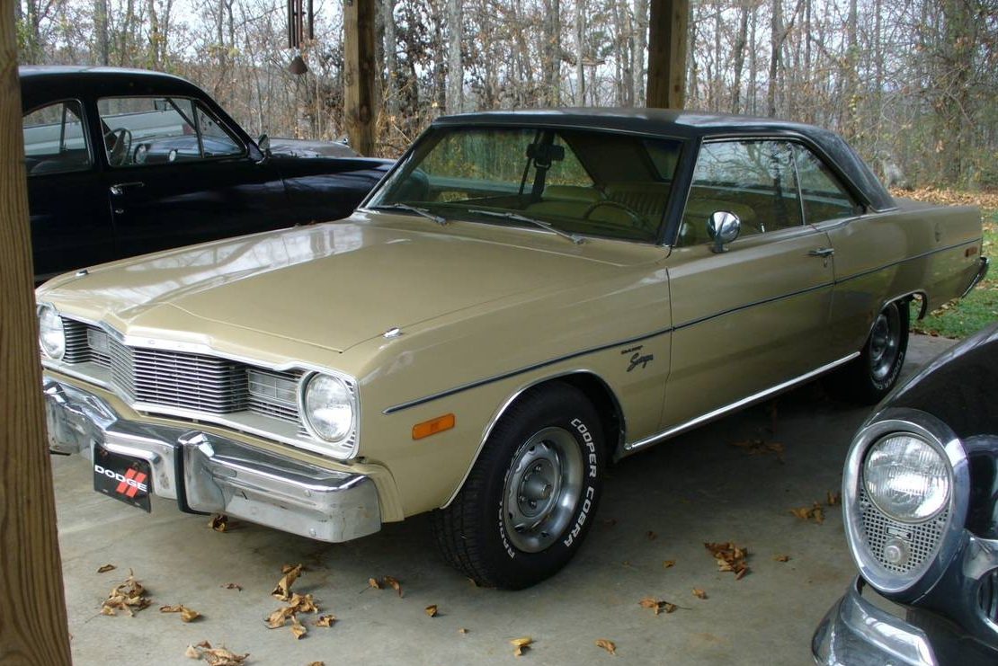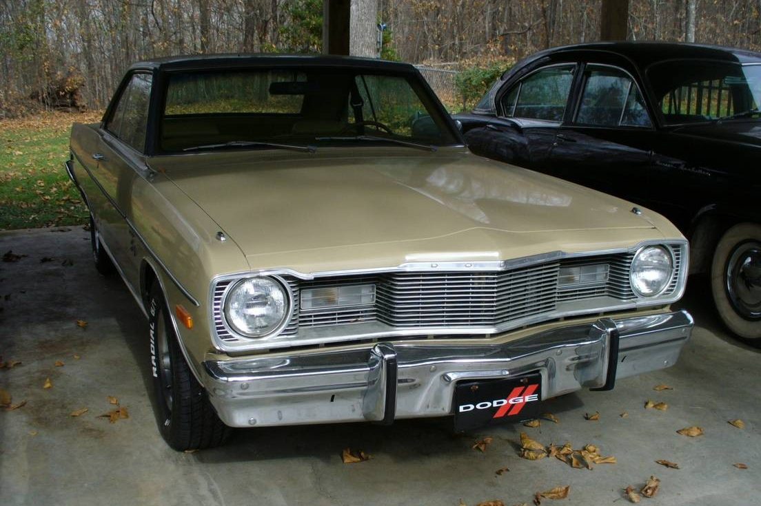 My dad had a 75 Dart Swinger 2 door, dark green with dark green interior and a dark green vinyl top too! 318 2bbL smogger engine (no guts) and 727 at. Crappy mileage to match the crappy performance until….off with the intake manifold, exhaust manifold, exhaust system and replace with one off an older 318 w:4bbL, headers and true dual exhaust- much better performance and seems like the gas mileage about doubled for him as well (but not the kids!).