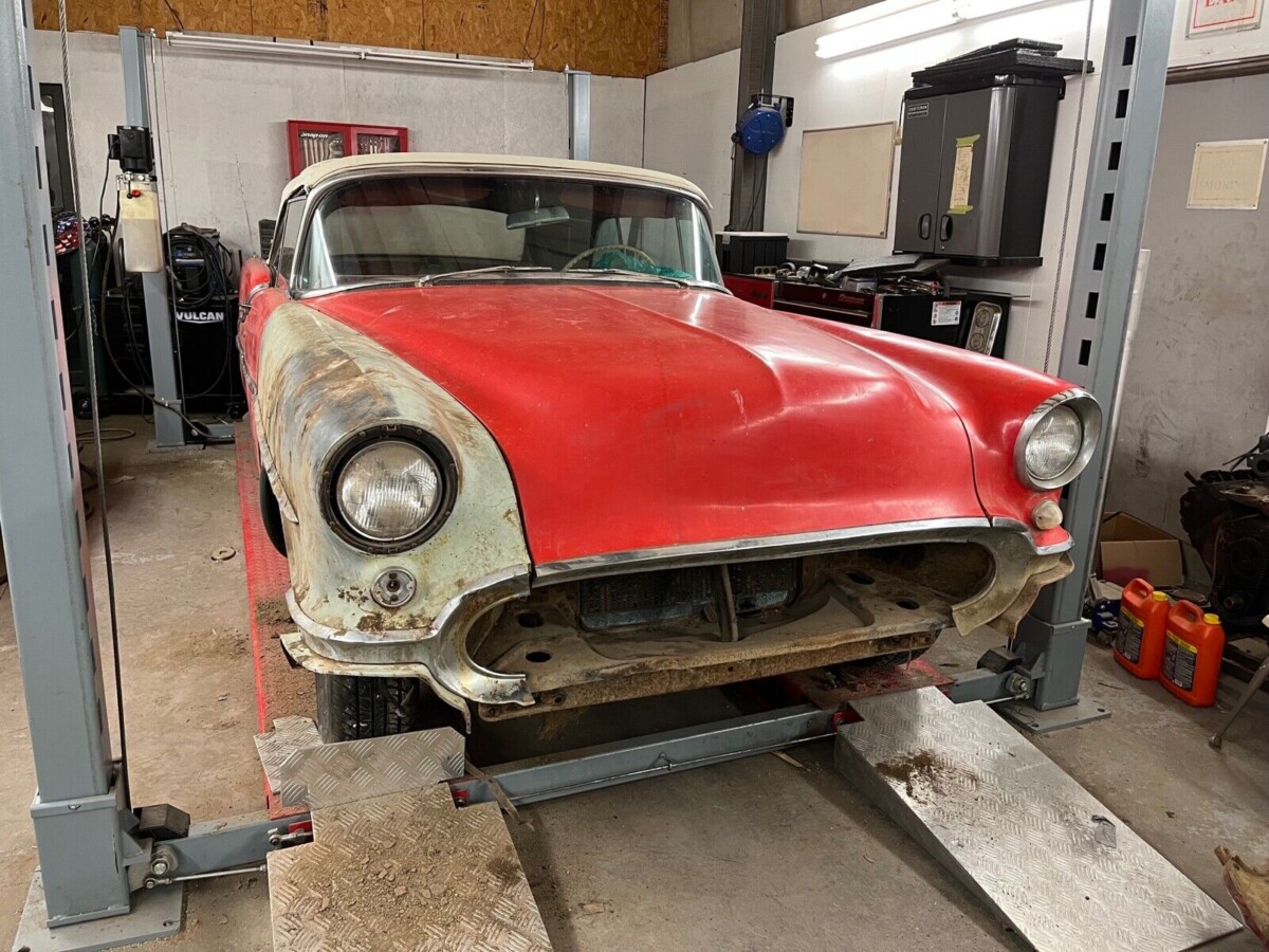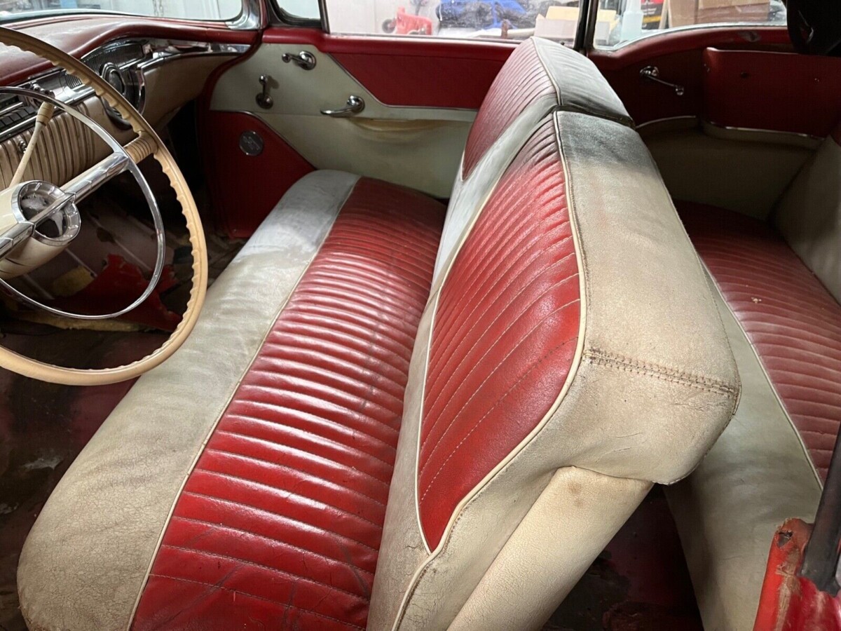 Oldsmobile redesigned its cars in 1954 (as did the other GM marques). So, styling changes were minimal the following year when the seller’s drop-top was produced. The company set two milestones that year, building its five-millionth automobile and hitting sales of 583,000 cars for the first time. That would include the 88, Super 88, and 98 of which 9,007 copies were a Super 88 convertible like this one. All Olds cars used a 324 cubic inch “Rocket” V8, but the Super 88 and 98 got a 4-barrel carburetor that helped the motor develop 202 hp. This was paired with a positive-shifting, 4-speed Hydra-Matic transmission.