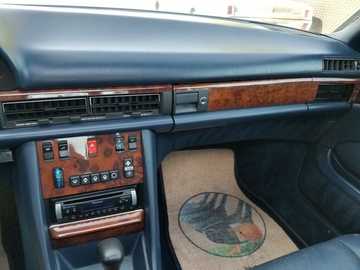 The burl wood in the dash and center stack looks far better than it usually does in a car of this age, another good indication this 380SEC has been garaged since new. Most Mercedes’ wood trim looks fairly rough at this point if the car isn’t a showroom-class example, and many also have a cracked dash. This car suffers from neither, and the blue leather seats and carpeting are also in excellent shape. The non-OEM radio is really the only let-down, but that’s easily remedied with a Becker radio pulled from any number of junked Mercedes models, ranging from W124s to W201s. The solitary floor mat shows a driver hitting a golf ball, so the odds of this car belonging to a retiree are quite good.