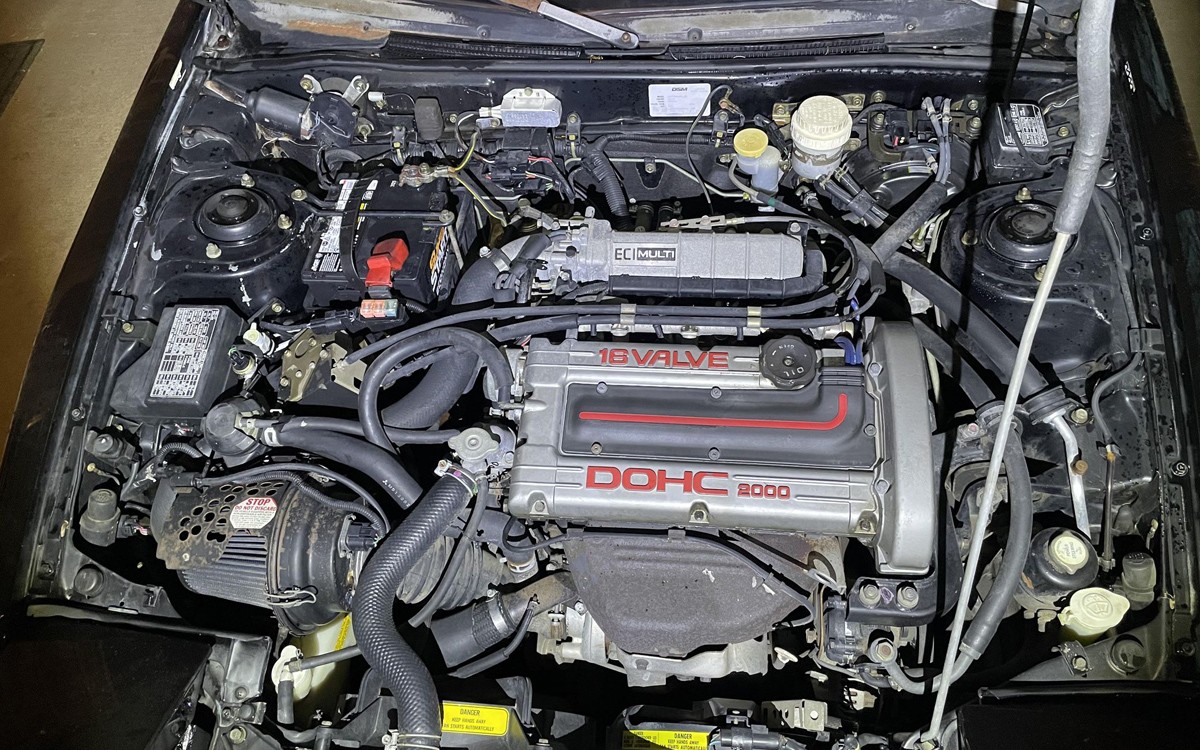 The engine – or I think there’s an engine in there somewhere – is a Mitsubishi 4G63T, a 2.0L inline-four turbo with 190 horsepower and just over 200 lb-ft of torque. Thanks to having AWD, the steering wheel won’t be dragged out of your hands as you floor it and the turbo kicks in. With about a 6.5-second 0-60 time, it’s not a white-lipped rocket but it’ll be the rarest 6.5-second AWD 5-speed two-door hatchback with a luxurious leather interior at 99% of car shows. Have any of you owned an Eagle Talon?