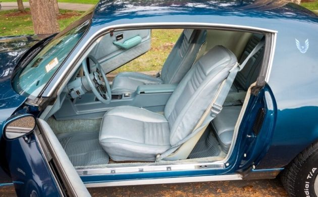 The light blue vinyl interior looks like it should for a 56k mile car. There is some fading most likely due to the sun of the seat backs and door panels. That was common with this lighter color. Pontiac offered the second generation in 4 distinct models – base Firebird, Esprit, Formula and Trans Am. This Formula is equipped with power windows, the custom interior option and the WS6 handling package. The WS6 handling package came with 4 wheel disc brakes.